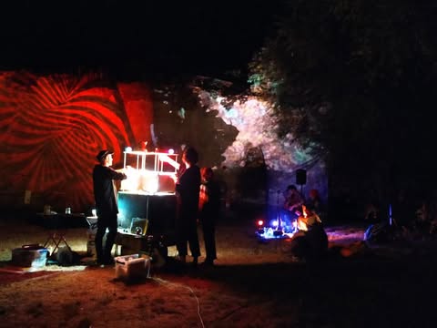 Seaphone live à Saint-Loup-sur-Thouet, Juillet 2025 et accompagnement visuel par Nyktalop Mélodie : projection low-tech