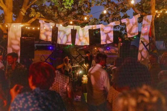 Guinguette Honky Tonk à la Maison Müe La Rochelle, visuels low-tech Nyktalop Mélodie en accompagnement du concert des Cherry’s on top