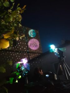 Mapping low-tech pour le centenaire de l’APSA Poitiers a l’aide de projecteurs upcyclés sur la façade de l’ancienne chapelle de l’APSA